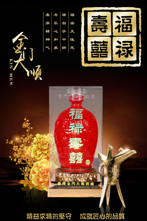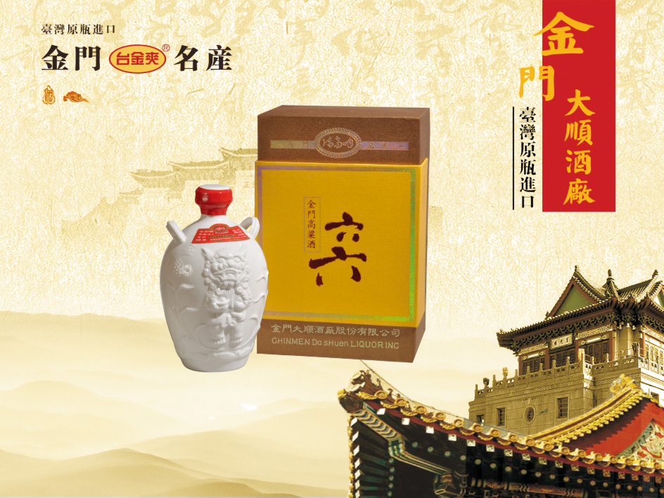 金門大順酒廠股份有限公司 為臺灣金門第一家合法民營酒類制造業(yè)者,多年來以生產好酒為宗旨,秉持傳統(tǒng)古法釀造技術,廣受消費者好評。